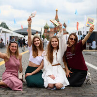 Детская площадка фестиваля, как обычно, занимала четверть Красной площади — это одновременно и игровая комната, и территория серьезных презентаций и выступлений. Участвуя в мастер-классах, рисуя героев сказок, отвечая на вопросы викторин, мальчишки и девчонки и, конечно, их родители встречались здесь с известными писателями, поэтами и иллюстраторами, смотрели сказки, а также дискутировали на разнообразные темы с экспертами в области детской и подростковой литературы на трех площадках.