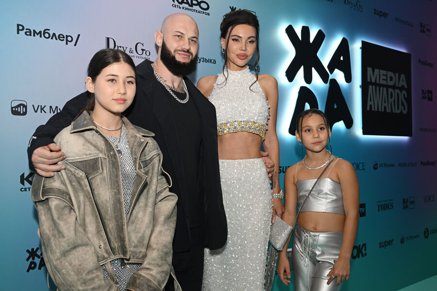 Джиган с женой Оксаной Самойловой и дочками Ариелой и Леей