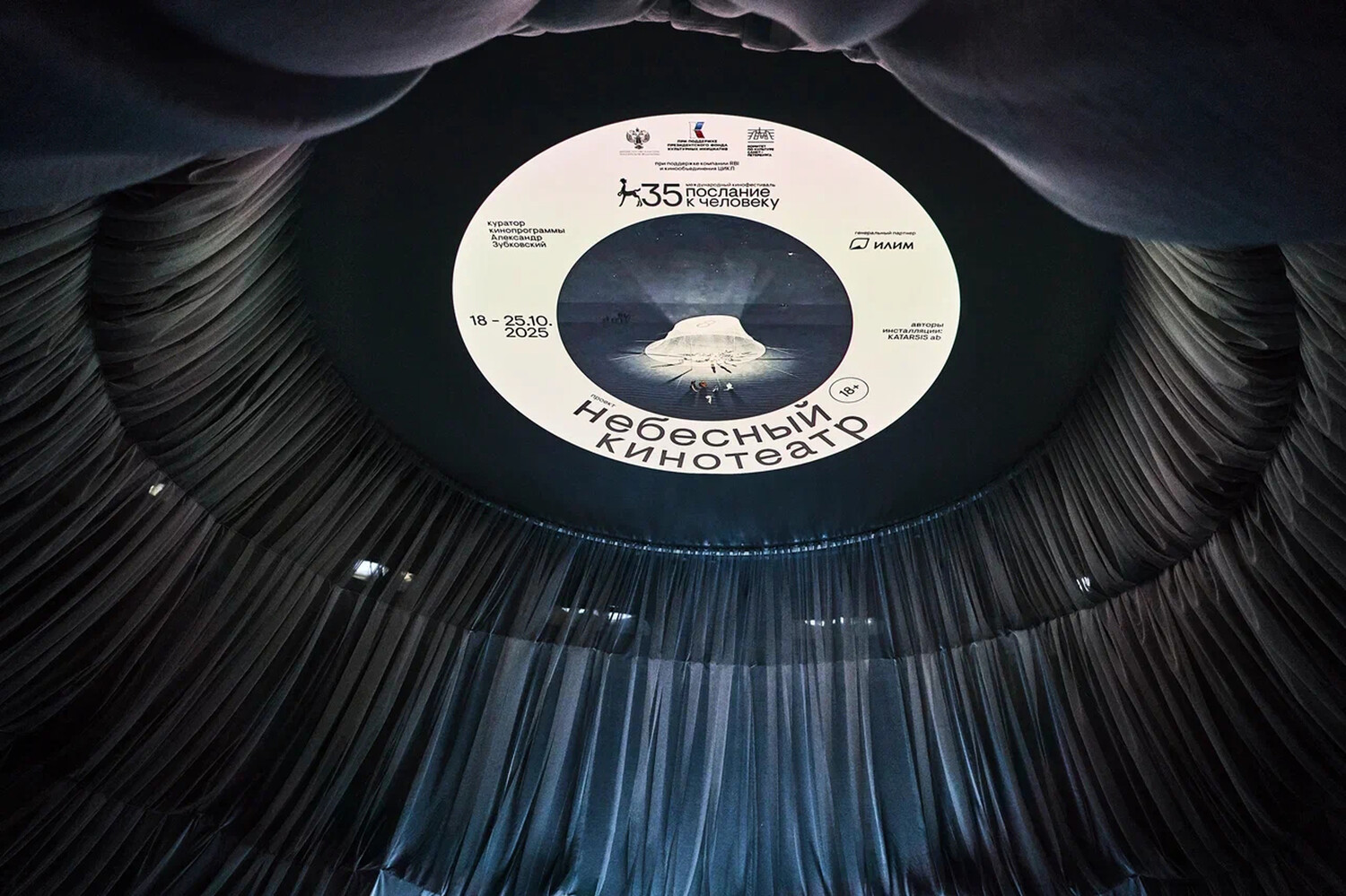 «Послание к человеку»/VKКроме того, фестиваль включил в себя обширную программу показов в «Небесном кинотеатре». Зрители смогли осуществить детскую мечту, посмотрев кино на огромном экране прямо над головой. Под куполом тканевой конструкции показали короткометражные и полнометражные картины российских и зарубежных кинематографистов — в частности, ретроспективы Скотта Барли, Бена Риверса и Такаши Макино.