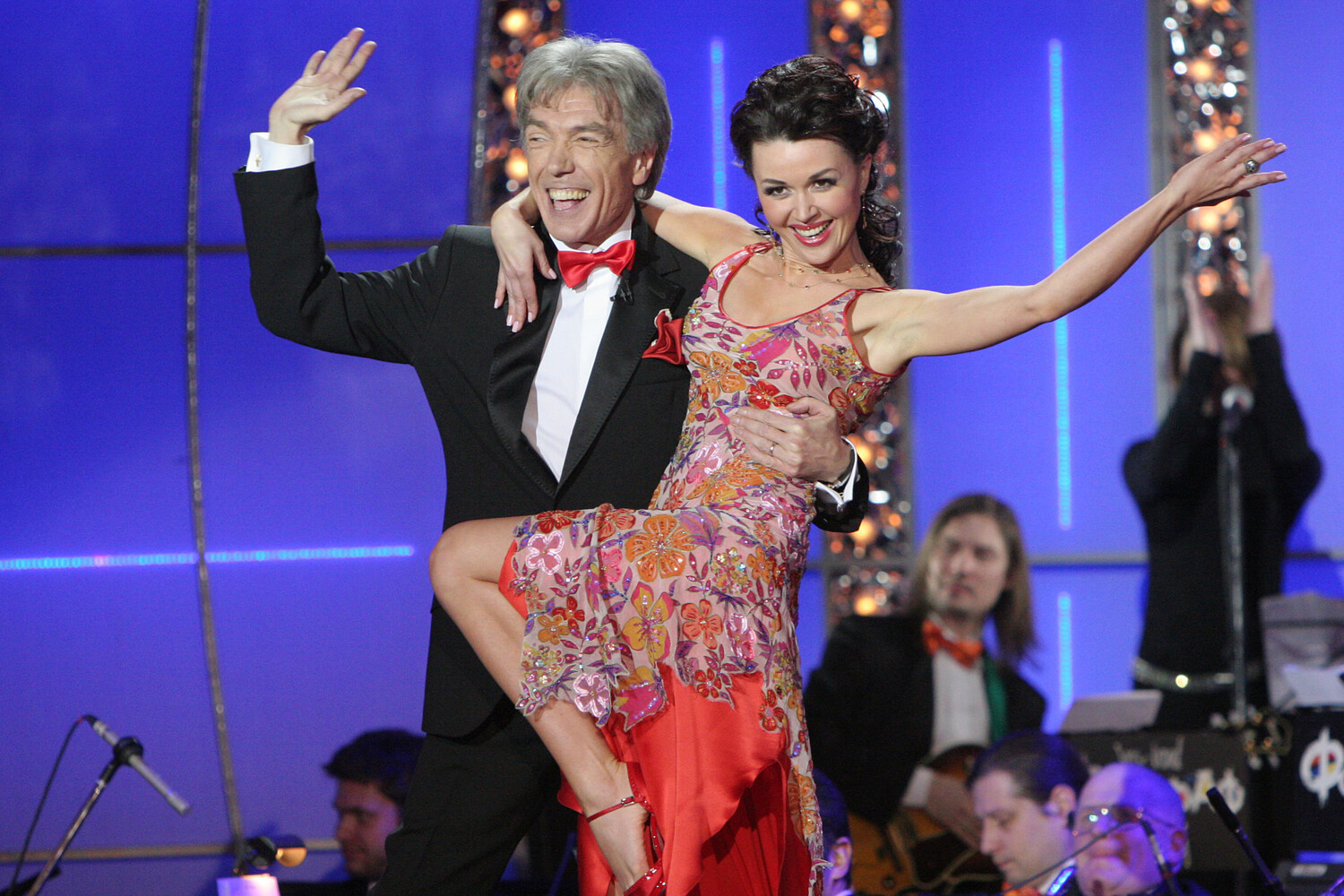 Ведущие шоу Анастасия Заворотнюк и Юрий Николаев во время съемок нового телепроекта для канала «Россия» — «Танцы со звездами», 2006 год