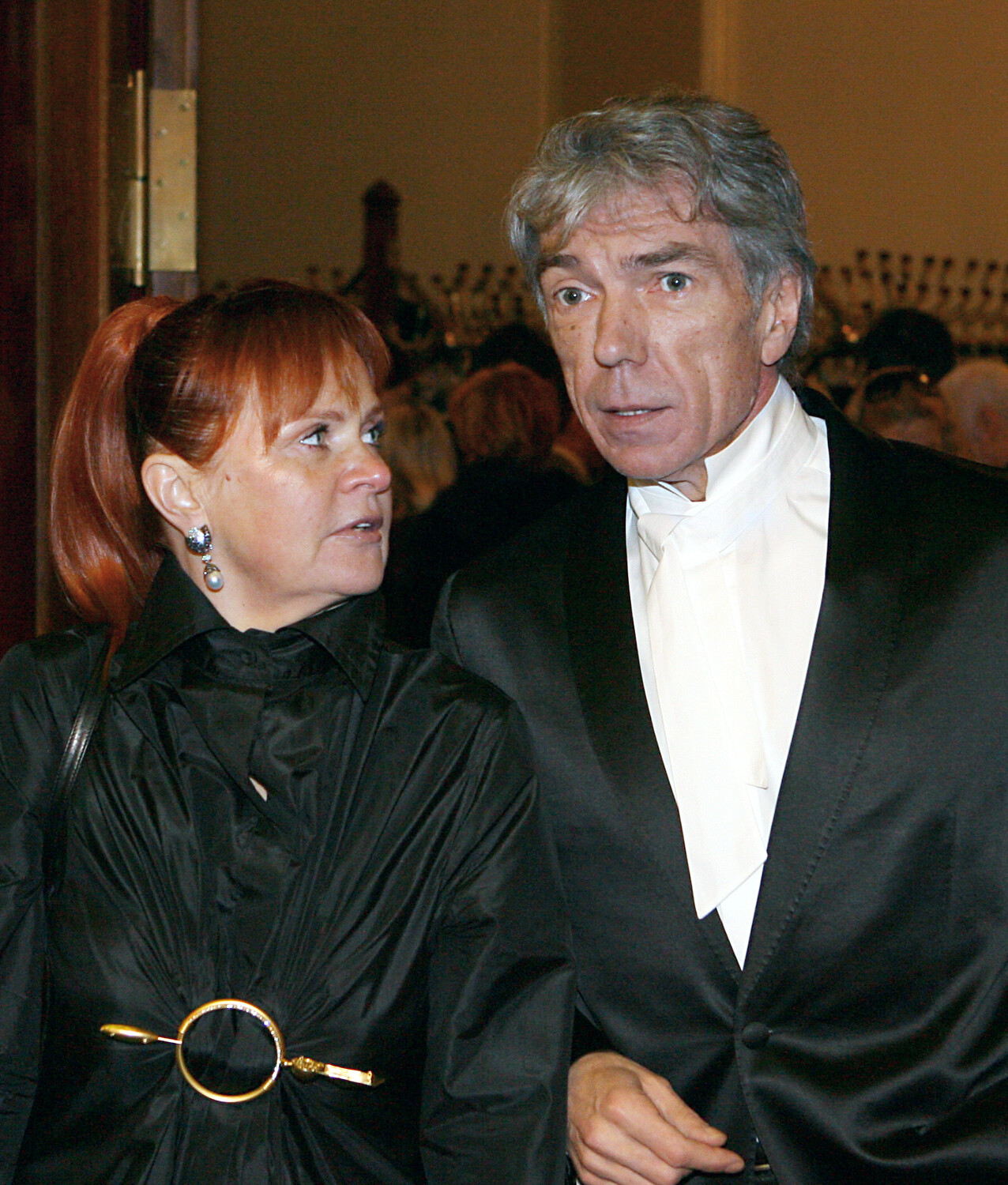 Телеведущий Юрий Николаев с супругой Элеонорой после традиционного показа коллекции Валентина Юдашкина, который прошел ГЦКЗ «Россия», 2006 год