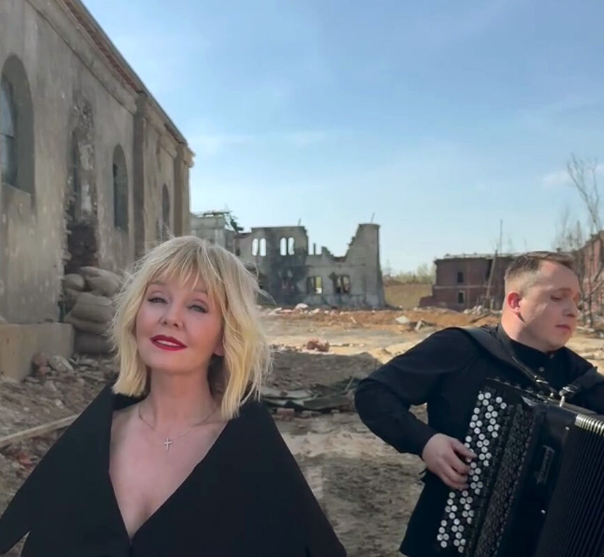 Калинкин опубликовал 26 апреля видео с певицей, и сохранил его в разделе «Актуальное» под названием «2025». В ролике Валерия поет под аккомпанемент гармониста, а за ее спиной виднеются руины здания. Певица одета в черное платье, а ее образ дополняет красная помада. Где именно снят ролик, неизвестно.