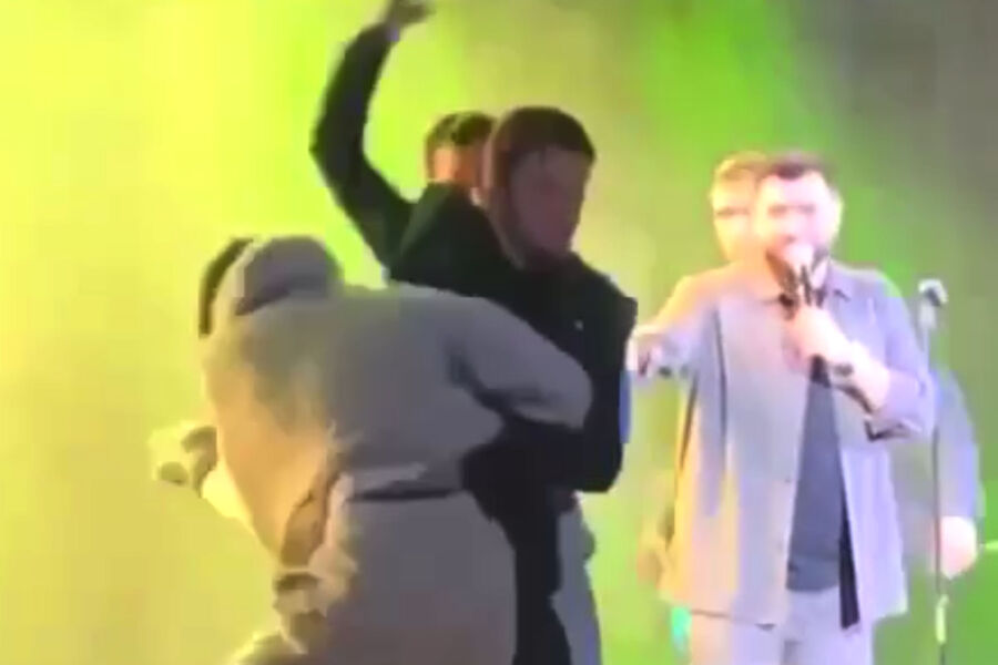 Молодой человек неожиданно выскочил на сцену во время концерта Эльбруса Джанмирзоева в Нальчике. Об этом сообщается в Telegram-канале «Блог Дагестана».