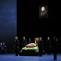 Церемония прощания проходит на исторической сцене театра, после чего Симонова похоронят на Троекуровском кладбище.