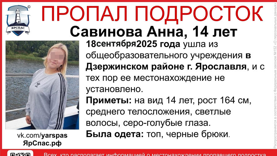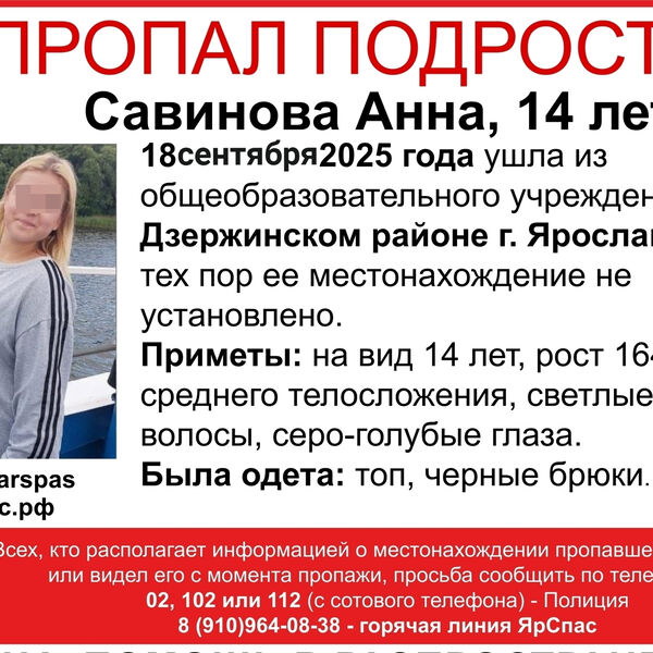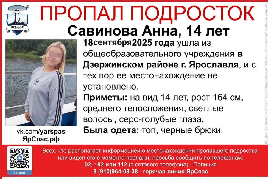 В Ярославской области полиция и волонтеры уже неделю ищут 14-летнюю Анну Савинову. Об этом сообщили в пресс-службе поискового отряда «ЯрСпас».