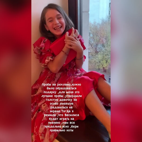 «Пробы на рекламу. Нужно было обрадоваться подарку. Для меня это лучшие пробы. Утвердили толстую девочку, не особо умевшую радоваться на экране. Тогда я решила, что Василиса будет играть на пианино, там все предельно ясно — бери правильно ноты», — отметила артистка, показав видео.