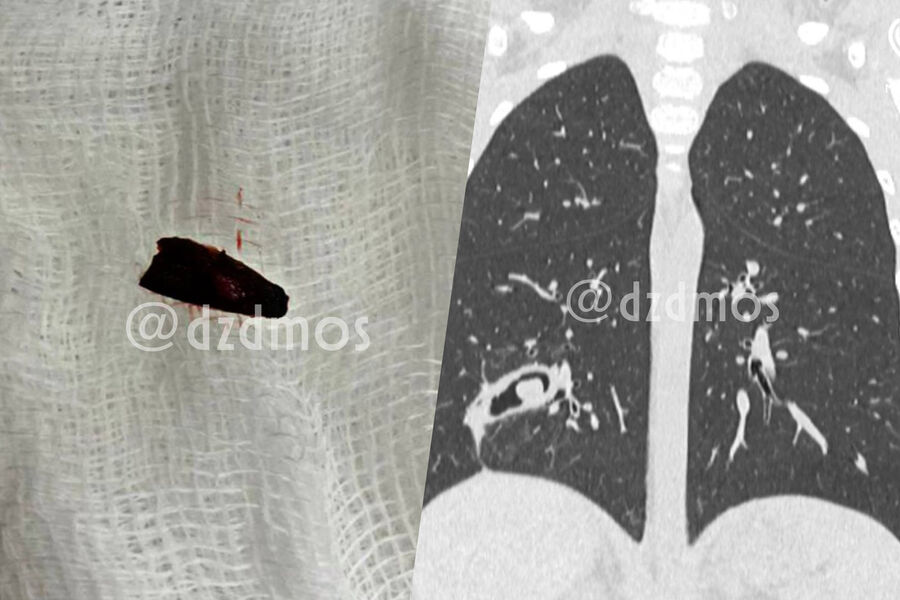 «Как выяснилось, часть скорлупы семечки глубоко впаялась в третий субсегмент правого легкого, из-за чего у пациентки образовался бронхоэктаз, то есть плохо функционировали из-за скопления гноя бронхи», — рассказал детский хирург Дмитрий Еремин.