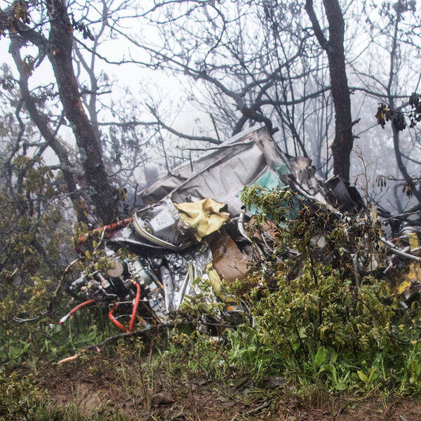 - Вертолет загорелся после столкновения с горой.
