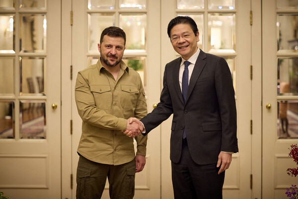 Президент Украины Владимир Зеленский и премьер-министр Сингапура Лоуренс Вонг во время встречи в Сингапуре, 2 июня 2024 года