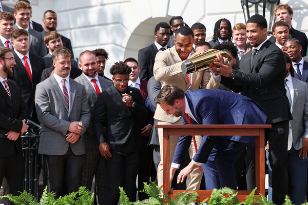 Вице-президент США Джей Ди Вэнс уронил и сломал чемпионский кубок победителей турнира по американскому футболу среди студентов. Об этом сообщает телеканал ABC News.