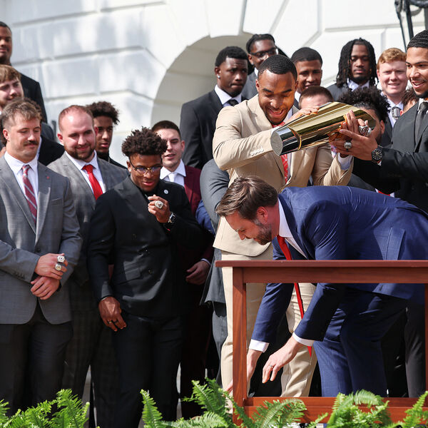 Инцидент произошел во время фотографирования команды с Вэнсом. Вице-президент взял спортивный трофей в руки и неожиданно уронил его, вызвав большое оживление среди участников церемонии.