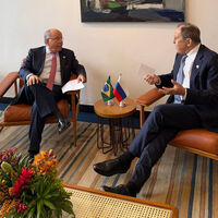 Министр иностранных дел РФ Сергей Лавров встретился «на полях» саммита БРИКС в Рио-де-Жанейро со своим бразильским коллегой Мауро Виэйрой. Фото опубликовала в своем Telegram-канале официальный представитель российского МИД Мария Захарова.