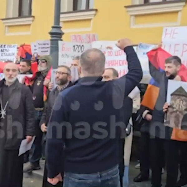 Десятки армян вышли на митинг в Москве против политики премьер-министр республики Никола Пашиняна. Об этом сообщает Telegram-канал Mash.