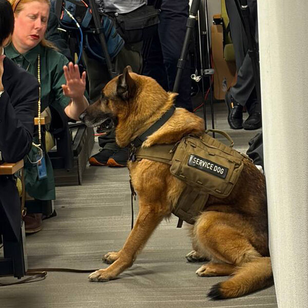 На прикрепленной фотографии видно, как сбоку от операторов сидит овчарка и внимательно смотрит на людей.