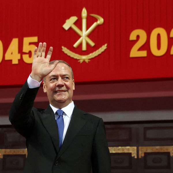 Медведев возглавляет делегацию «Единой России», прибывшую в Пхеньян по приглашению Центрального комитета Трудовой партии Кореи. Российская делегация примет участие в официальных торжествах, приуроченных к 80-летнему юбилею партии, который будет отмечаться 10 октября.