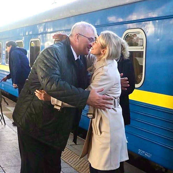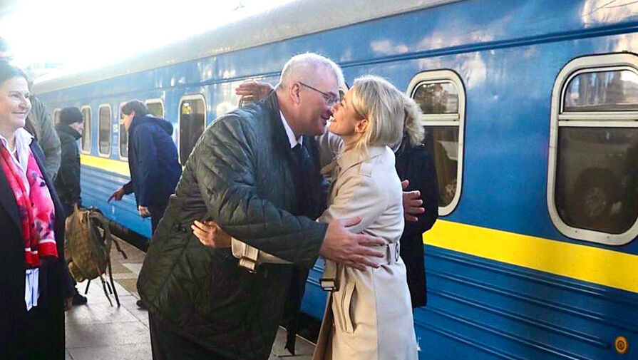 На вокзале ее встретил глава МИД Украины Андрей Сибига.