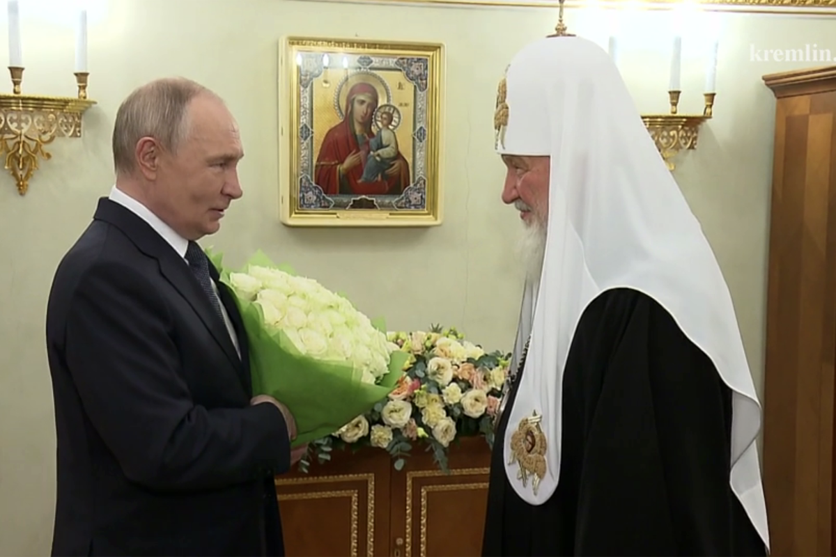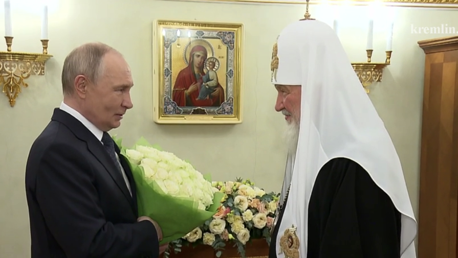 Российский лидер встретился с главой Русской православной церкви (РПЦ) в Патриарших палатах Кремля. Глава государства отметил вклад патриарха Кирилла в православный мир и общество в целом. Путин подчеркнул энергичность патриарха, поблагодарил его и пожелал здоровья, а также вручил букет белых роз.