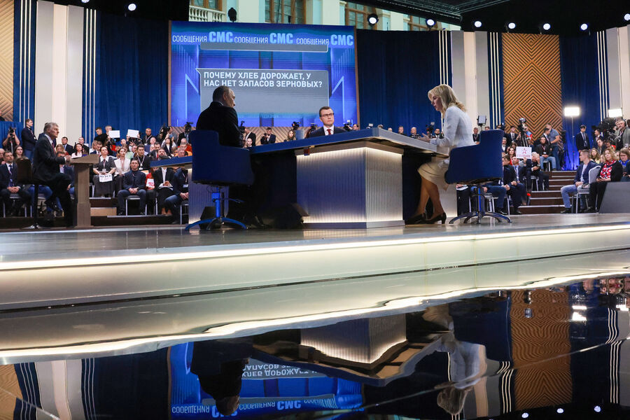 Начавшись в 12:09, она до сих пор идет в прямом эфире, во время которого глава государства отвечает на вопросы граждан и комментирует актуальные темы.