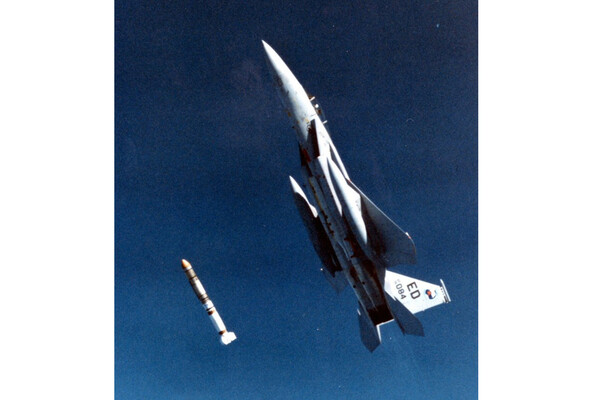 Первый и единственный испытательный перехват настоящего спутника состоялся 13 сентября 1985 года. Майор Уилберт Пирсон запустил ASM-135 со своего F-15, находясь в 11 км над океаном у берегов Калифорнии и продолжая набирать высоту под углом 60 градусов. Мишенью стал американский аппарат Solwind или P78-1, — вышедшая из строя обсерватория для поиска околосолнечных комет. Перехватчик попал в цель на высоте 555 км со скоростью соударения 6,7 км/с. Оба аппарата разлетелись на сотни обломков, а Пирсон стал единственным в мире летчиком-истребителем, получившим воздушную «победу» над космическим аппаратом, пусть и в ходе испытаний.