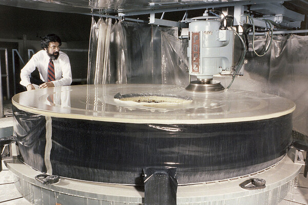 В первую очередь, Hubble позаимствовал у KH-11 главное зеркало: слегка вогнутый толстый диск диаметром 2,4 метра с отверстием в центре, вырезанный из специального стекла и отполированный до идеальной формы с точностью до десяти нанометров на заводах компании PerkinElmer. Человеческие руки, разумеется, на такое не способны, и потому полировали его машины с компьютерным управлением.