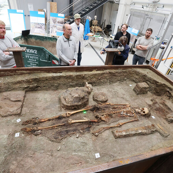 Могилу нашли во время археологических раскопок перед началом стройки. Были найдены 17 могил VI-VII веков. В этот период Тюрингия стала частью Франкской империи Меровингов. Также были найдены около 70 домов эпохи Меровингов. 11 обезглавленных лошадей были похоронены в семи ямах рядом с людьми. Могилы были глубокими и содержали деревянные погребальные камеры с оружием, драгоценностями, стеклом и бронзой.