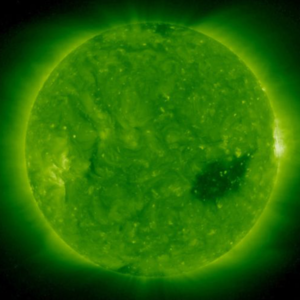 Отмечается, что солнечный ветер из корональной дыры может начать воздействовать на Землю и спровоцировать магнитные бури.