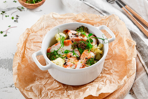• Ужин: запеченная рыба с тушеными овощами, салат из капусты и моркови.