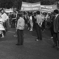 «На обратном пути, когда мы проезжали Зеленогорск, где перед винным магазином выстроилась гигантская очередь, один из райкомовцев наклонился ко мне и шепнул: «Ну зачем это было делать? С пьянством надо бороться, но не так же. У нас без перегибов ничего не обходится. Полвыходного наши люди должны гробить, чтобы купить бутылку». В Москве очередь занимают с 11. Торжество эгалитарности. Раньше очереди состояли по преимуществу из женщин, добывавших закуску. Теперь же к ним присоединились мужчины, вожделеющие бутылку».