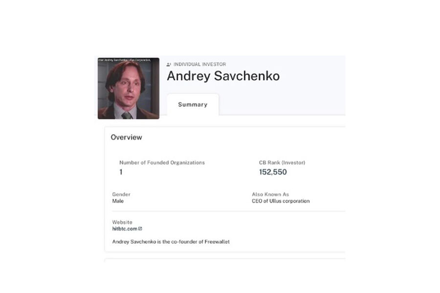 И здесь те же действующие лица: на портале Сrunchbase Андрей Савченко указан как сооснователь Freewallet, а в качестве его сайта значится страница биржи HitBTC.