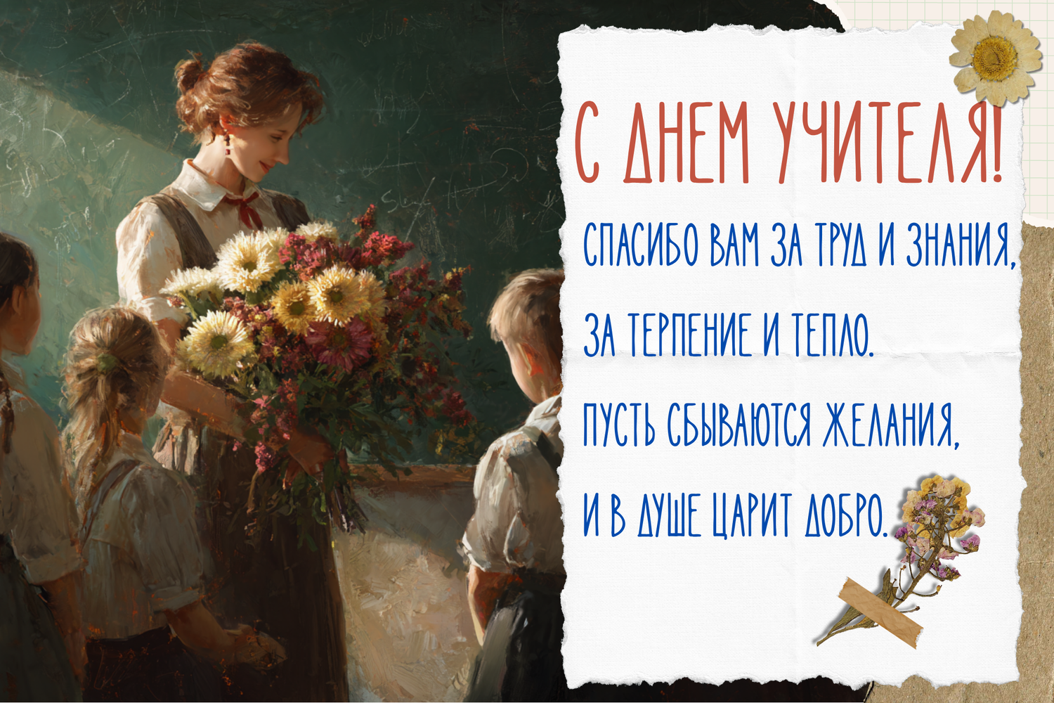 Специально ко Дню учителя «RusTopNews.Ru» создала коллекцию уникальных открыток. Просто выберите понравившуюся, скачайте, отправьте в мессенджере или поделитесь в соцсетях.