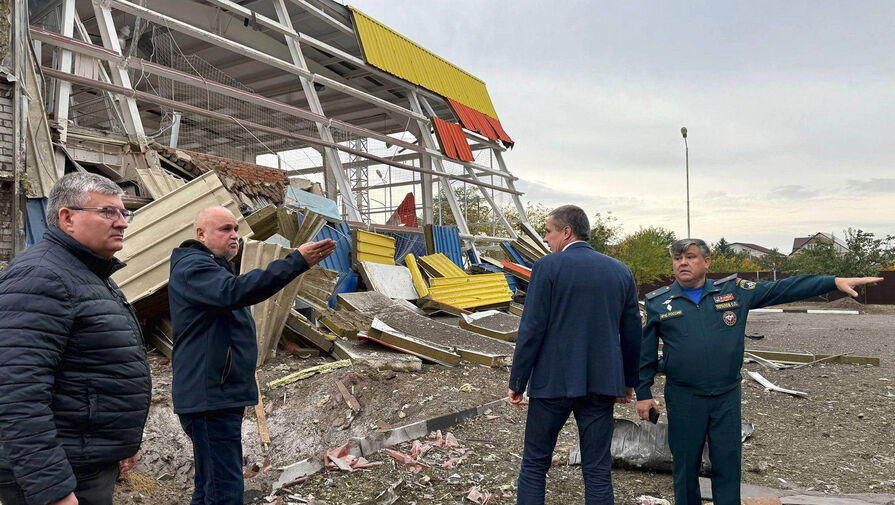 Гладков осмотрел место удара вместе с министром энергетики России Сергеем Цивилевым.