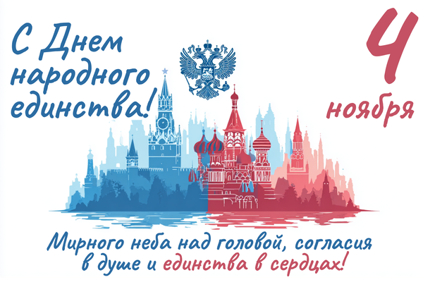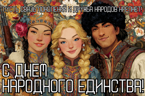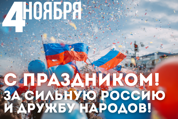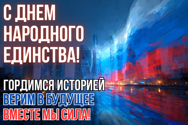 - С праздником! Пусть дух единства направляет и вдохновляет нас на новые свершения во благо страны. С Днем народного единства!