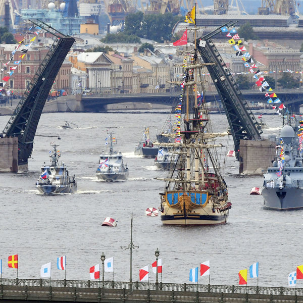 Главный военно-морской парад состоится 28 июля на фарватерах в акватории Невы между Благовещенским и Троицким мостами и на фарватерах в акватории Большого Кронштадтского рейда вдоль южной оградительной стенки порта.