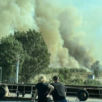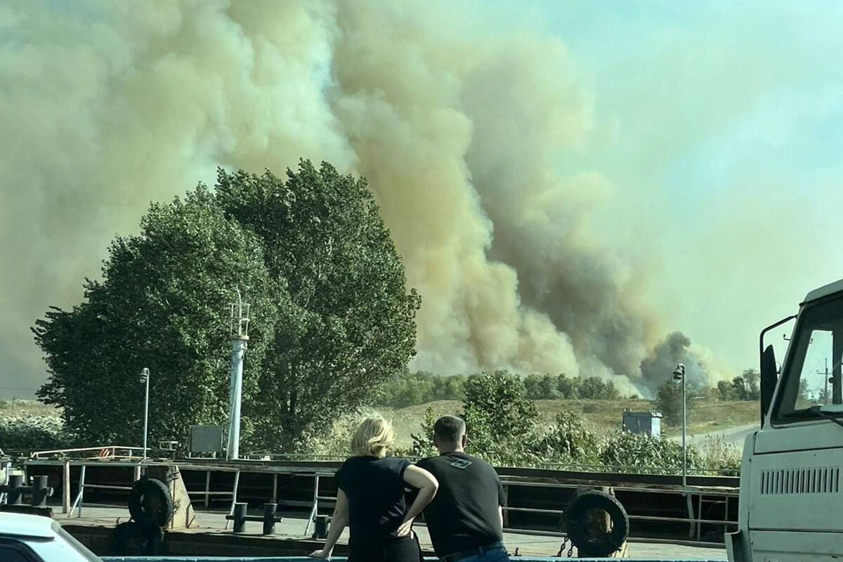 В Волгоградской области России загорелись 30 га сухой травы. Кадры пожара, снятые с теплохода, показал Telegram-канал Baza.