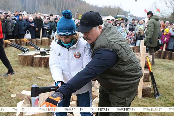 Президент Белоруссии Александр Лукашенко показал, как рубить дрова, на чемпионате и продемонстрировал топор отечественного производства. Об этом сообщает агентство БелТА.