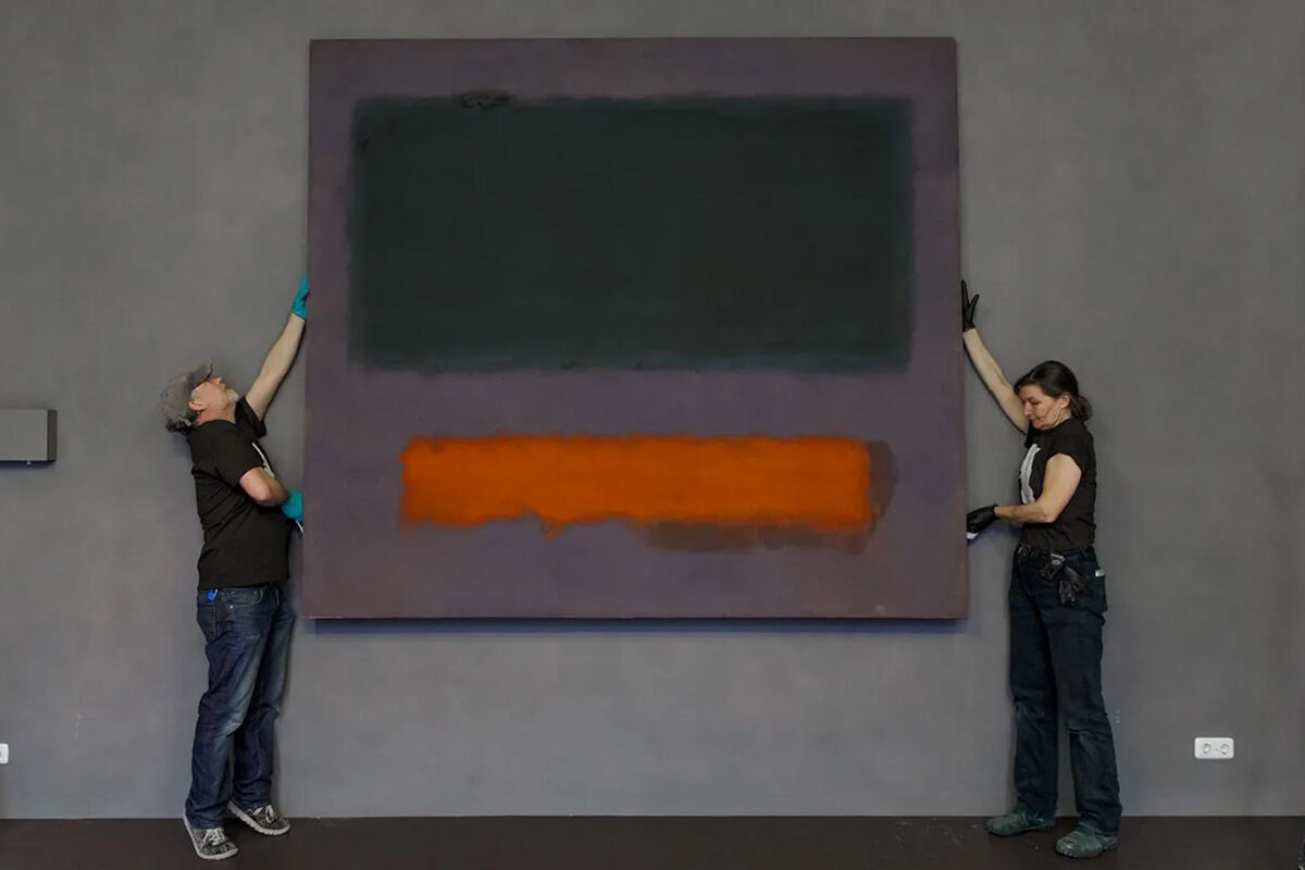 Как сообщается, речь идет о картине «Серый, оранжевый на бордовом, №8» американского художника Марка Ротко, которая была написана в 1960 году. Полотно представляет собой большой черный и маленький оранжевый прямоугольники на темно-фиолетовом фоне и с 1970-х годов находится в музее Бойманса-ван-Бёнингена в Роттердаме.