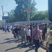 На кадрах, сделанных пассажиркой автобуса, видно, что большой поток людей движется вдоль трассы.