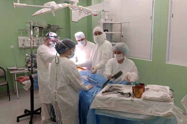 «Внутренняя сонная артерия в нормальном состоянии не превышает 4 мм. В нашем случае мы столкнулись с расширением до 4 см. Мы удалили расширенную часть сосуда, сформировали из нее сосуд нормальных размеров и заместили им тот участок, который прежде занимал аневризма», — рассказал заведующий отделением сосудистой хирургии Максим Уфимцев.