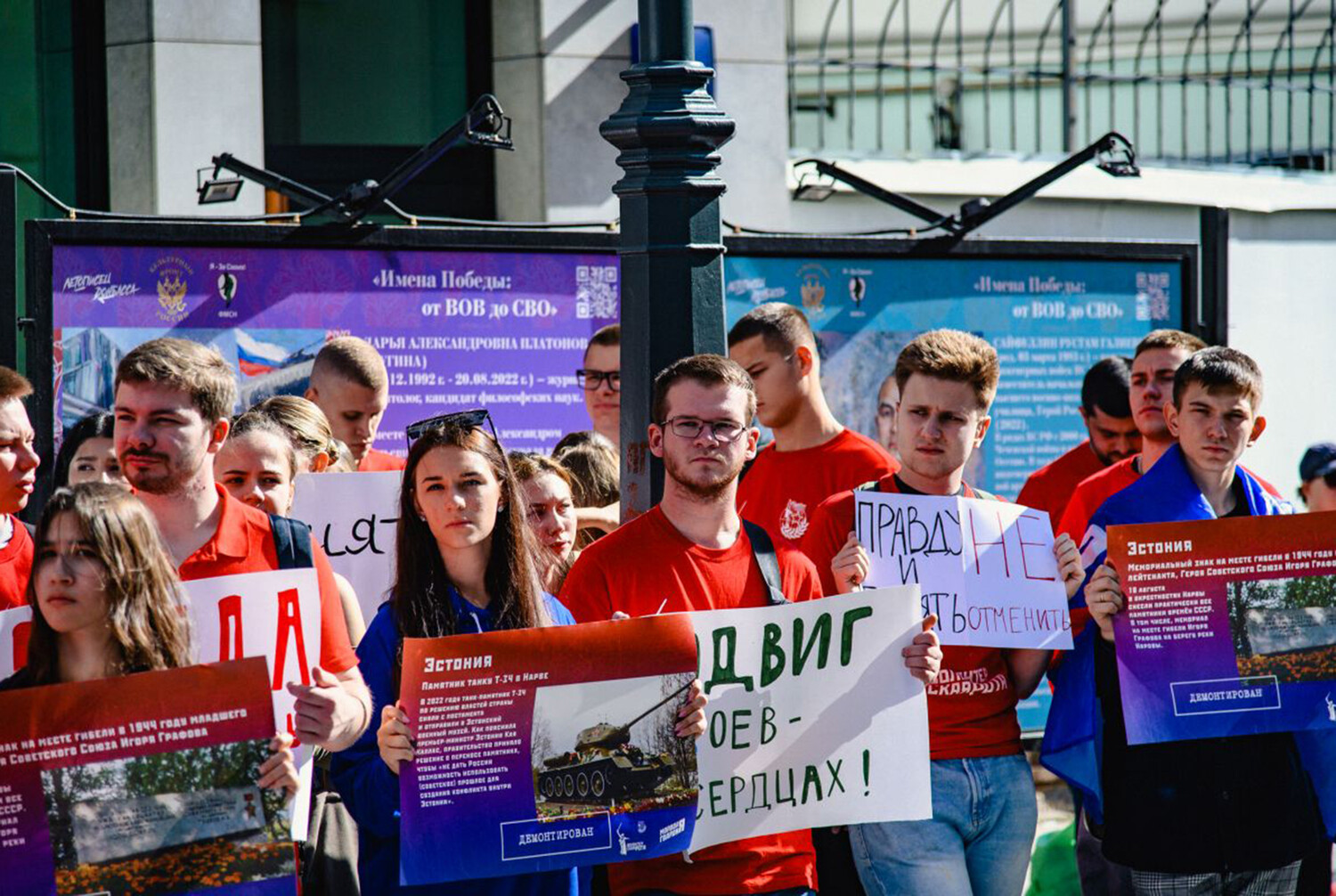 «81 год назад Советская армия освободила Эстонию. Мы видим, какую русофобскую политику проводит эстонское правительство: по всей стране сносятся памятники советским воинам, отправляется летальное оружие на Украину», — рассказал председатель МГЕР Антон Демидов.
