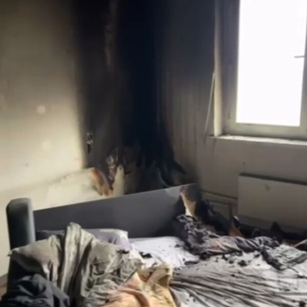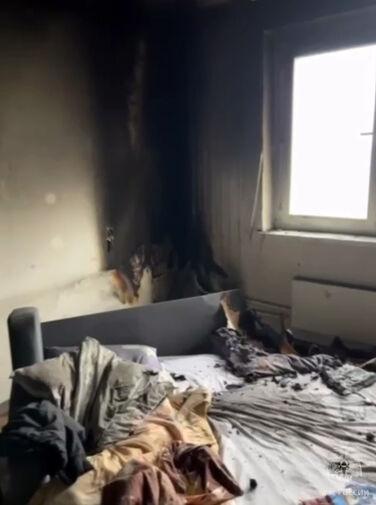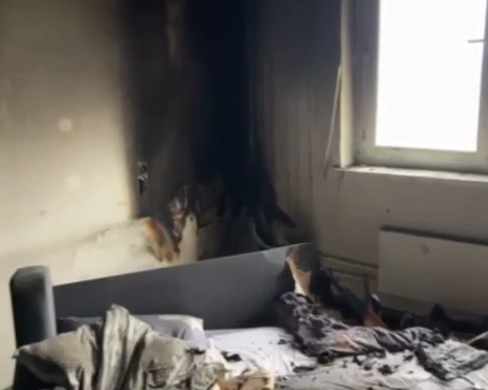 На кадрах с места заметно, что помещение серьезно пострадало. Большая часть предметов у окна обгорели.