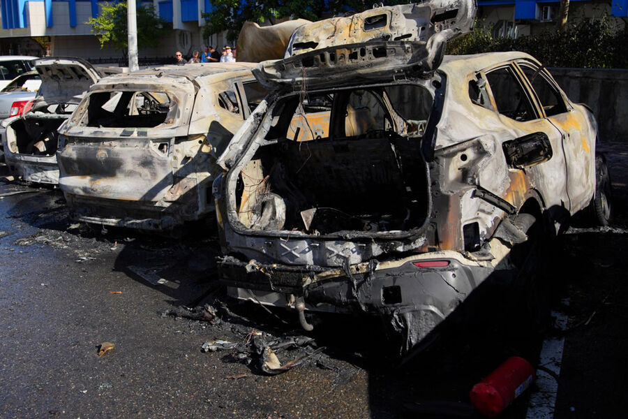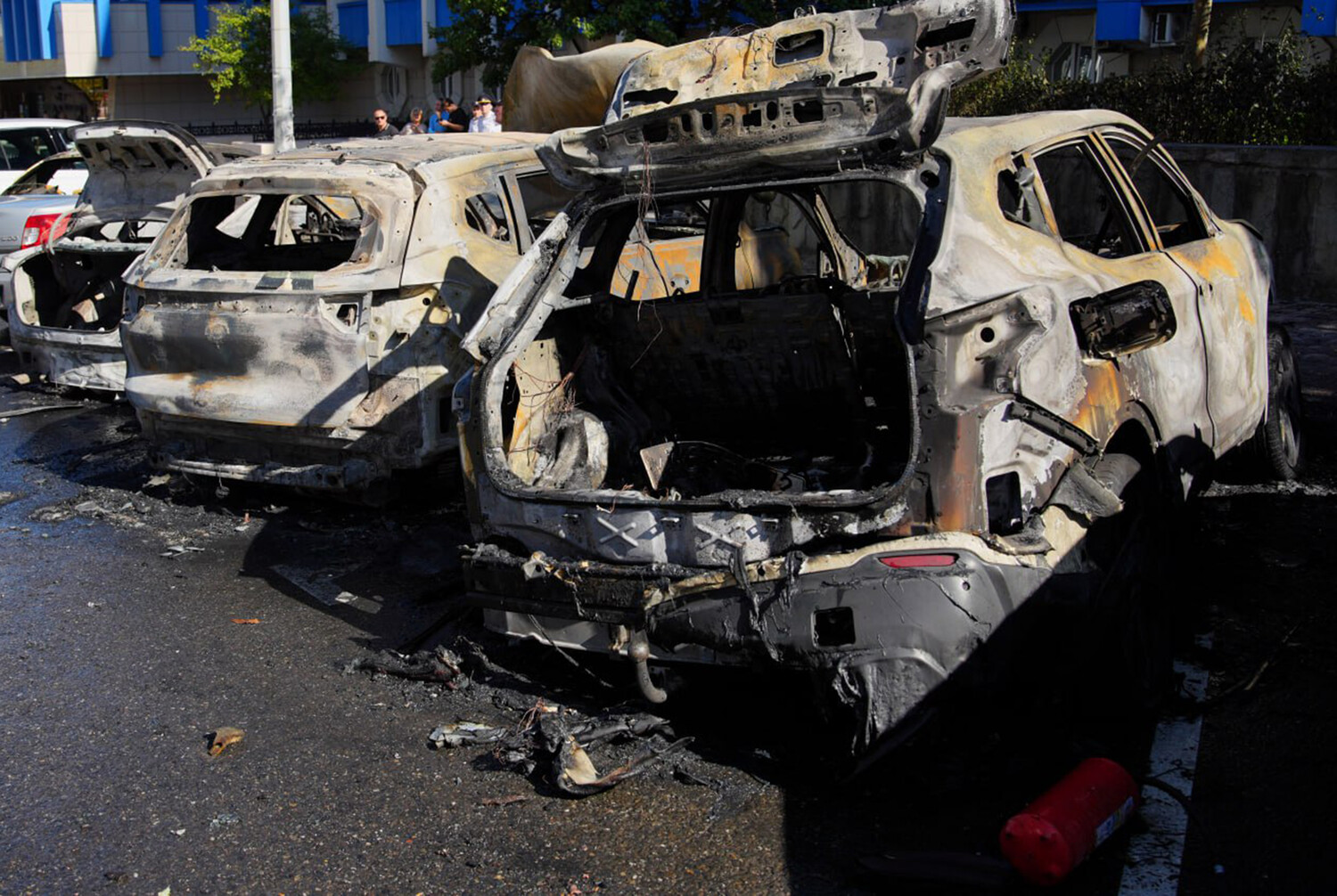 На кадрах видно, что в результате атаки вражеских БПЛА повреждения получили несколько жилых зданий — в окнах выбиты стекла. Также загорелись несколько автомобилей, некоторые из них выгорели дотла.