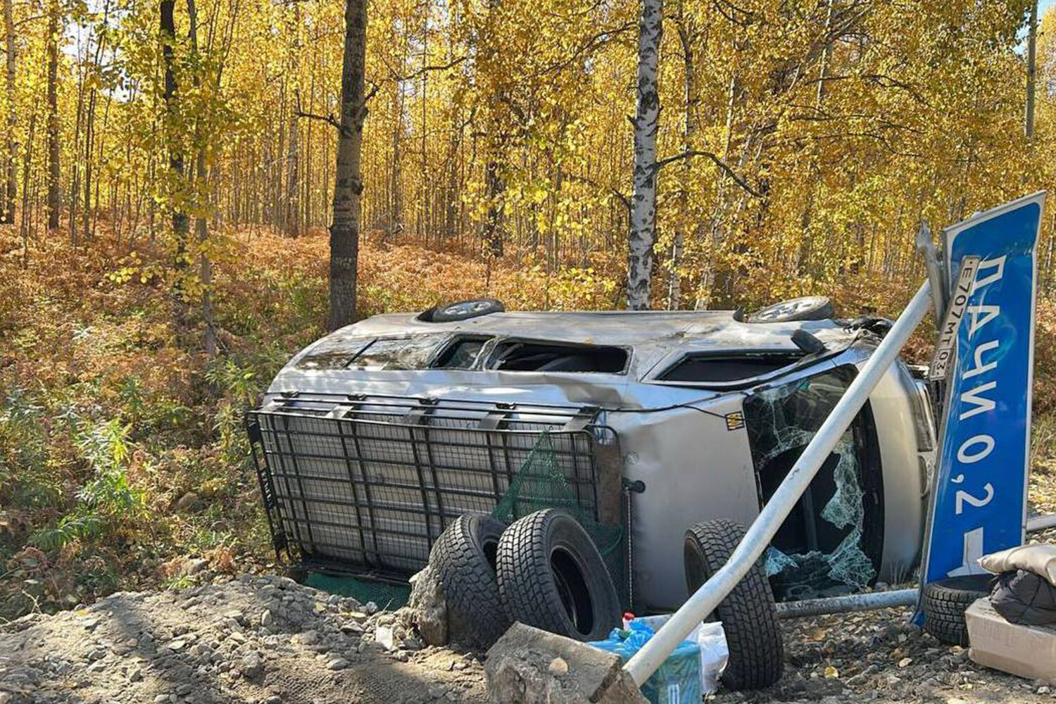 По предварительным данным, транспортное средство марки Toyota съехало в кювет и перевернулось на бок. На кадрах с места заметно, что транспортное средство получило серьезные повреждения, у него выбиты стекла. Съехав с дороги, судя по фото, автобус задел столб.
