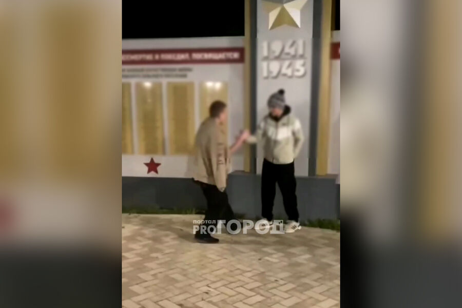 На кадрах двое юношей снимают пародию на популярный молодежный сериал у памятника ВОВ в селе Моргауши. Один из подростков нецензурно выражается рядом с мемориалом, а затем плюет в его сторону.