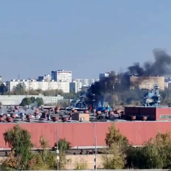 В публикации отмечается, что густой дым поднимается над промышленной зоной, расположенной рядом со станцией.