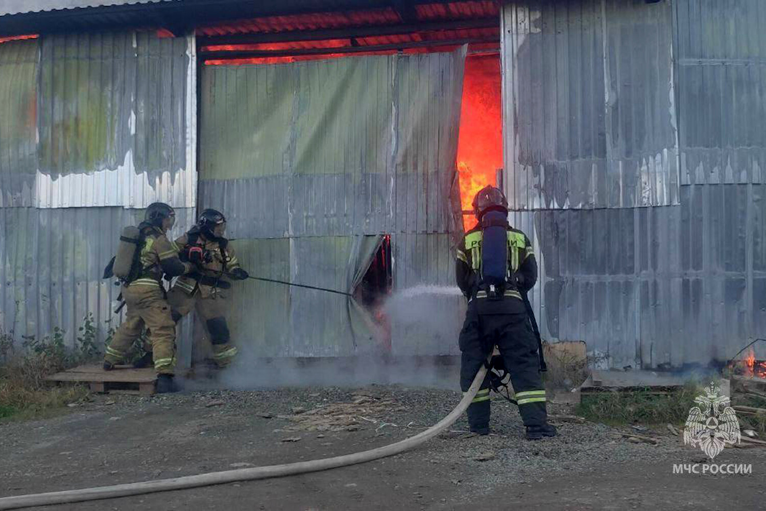 В ведомстве рассказали, что огонь охватил двухэтажный мебельный цех и металлический ангар. Три человека самостоятельно эвакуировались из здания. При этом никто не пострадал.