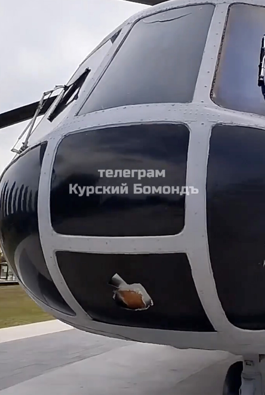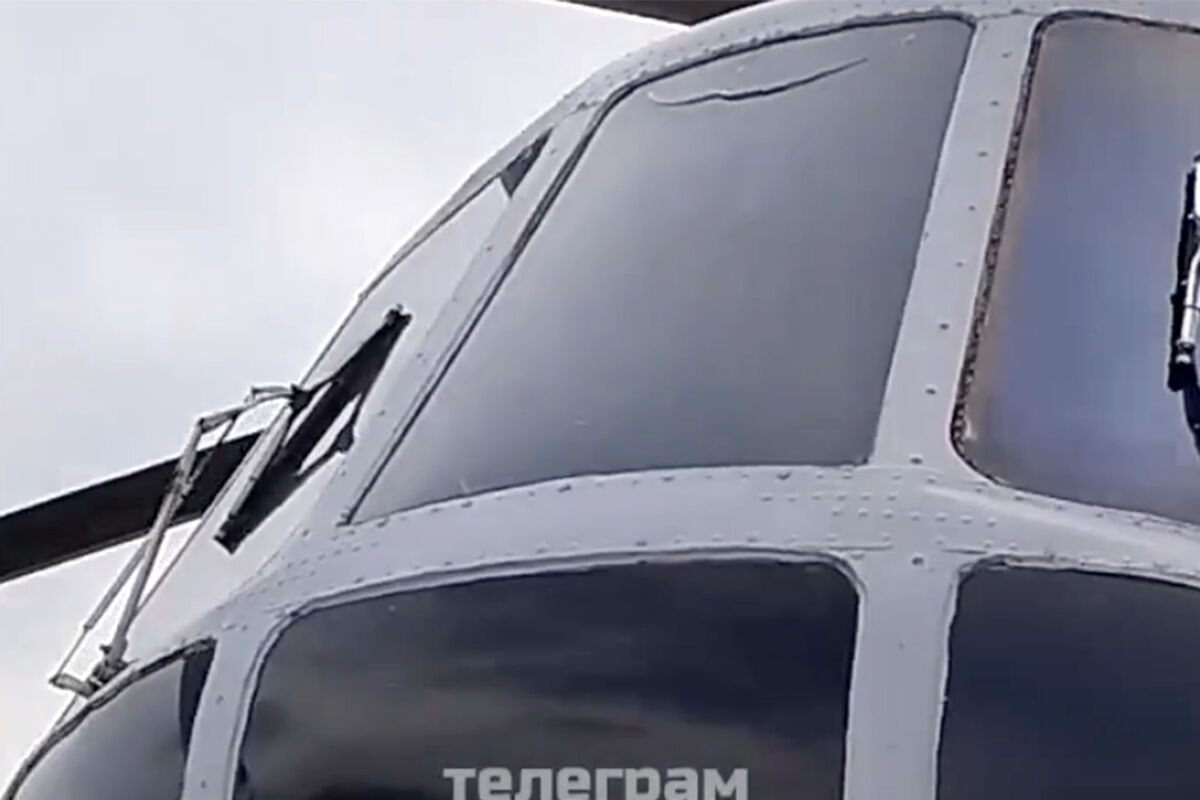 Публикация дополнена кадрами, на которых можно увидеть поврежденный вертолет. У воздушного судна пробито окно, на его корпус нанесены царапины.