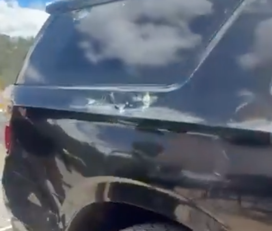 Радиоканал также опубликовал видеозапись с места происшествия, на которой запечатлены, предположительно, следы от пуль на автомобиле.
