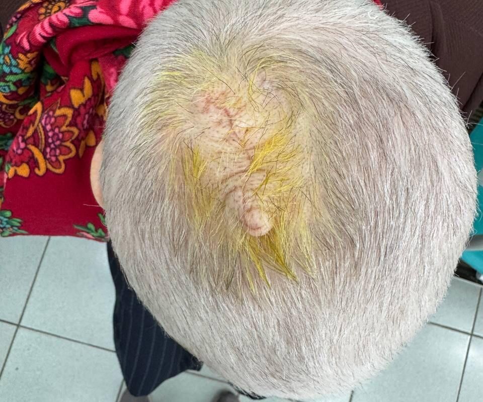 «Атерома выросла у женщины прямо на голове, чем, конечно, доставляла немалые страдания. К счастью, наши врачи смогли объяснить пациентке возможные риски и она согласилась на операцию. Так, с первого раза мы успешно удалили новообразование, без натяжения тканей, что обеспечило оптимальный косметический результат и быстрое восстановление», — рассказала хирург больницы Вера Заречина.