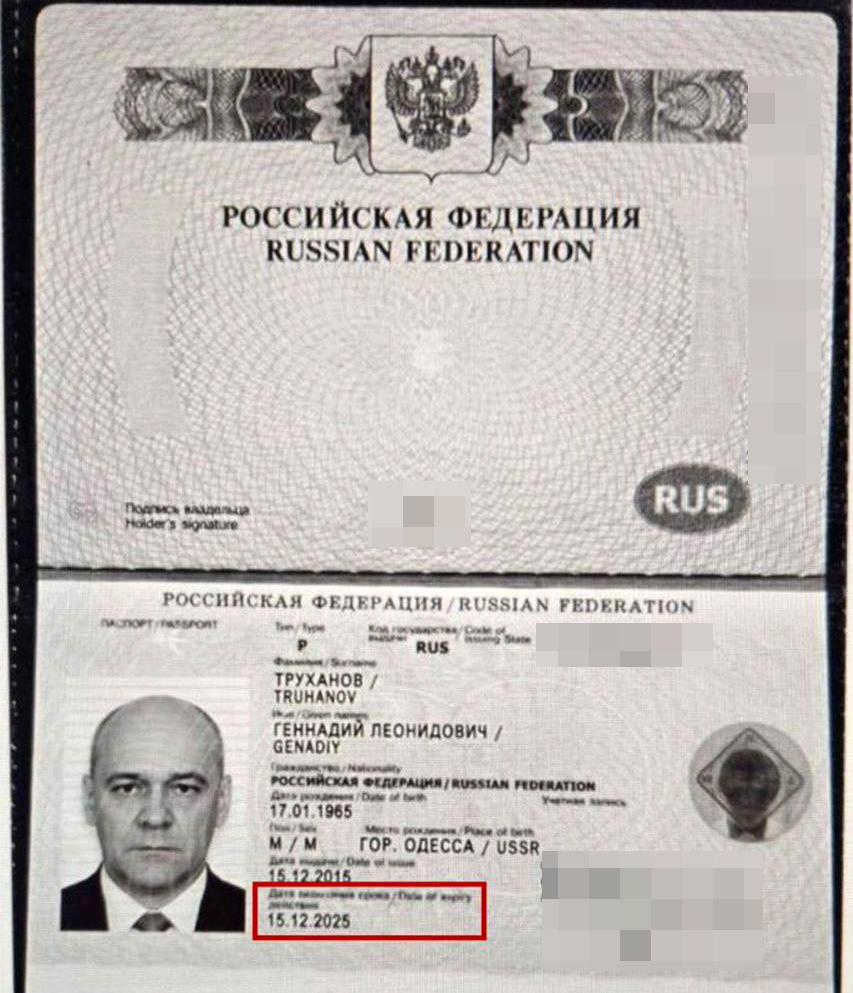 В СБУ рассказали, что Труханов также имеет действующий российский загранпаспорт. В распоряжение украинской спецслужбы поступили копии соответствующих документов. Загранпаспорт, по данным ведомства, был выдан Труханову в 2015 году, он еще действует.