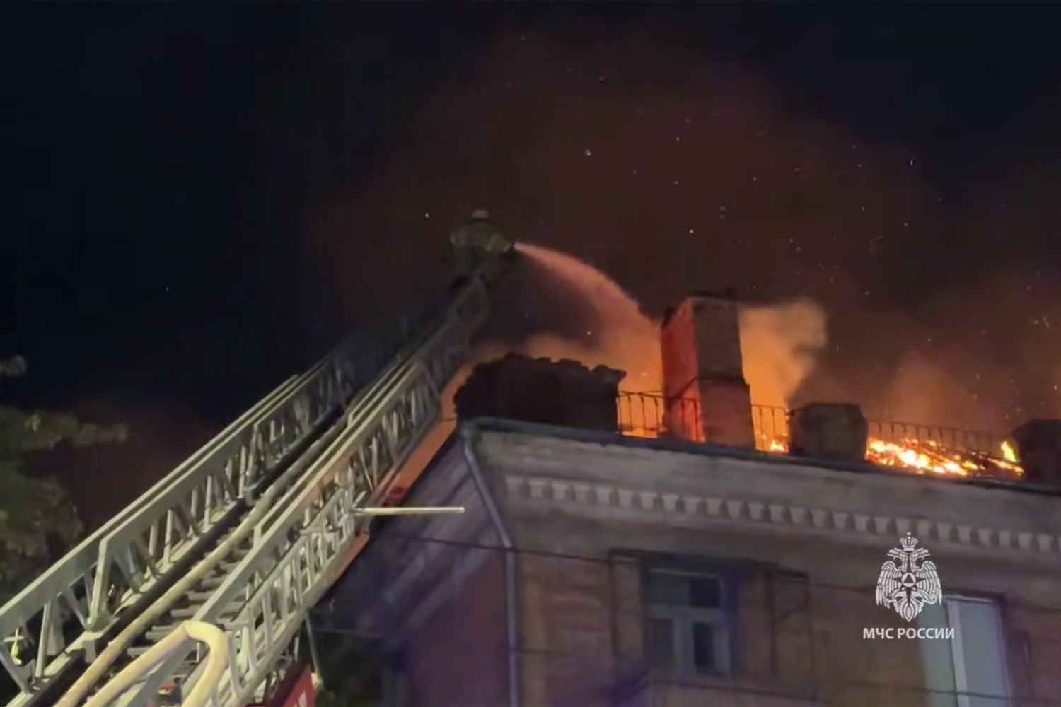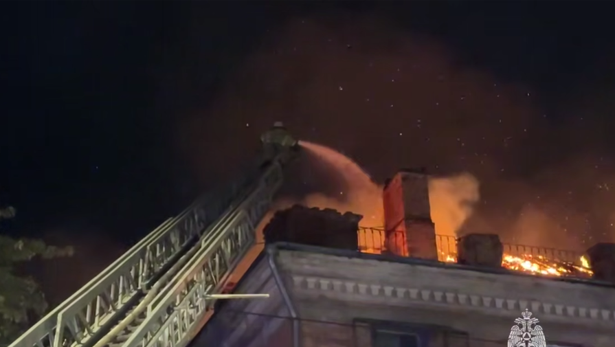 В ведомстве рассказали, что из здания на улице Тараса Шевченко эвакуировали 21 человека. Никто не пострадал. В тушении огня участвовали 69 пожарных и 13 единиц техники. Они ликвидировали возгорание. На видео МЧС видно, что горела крыша дома.